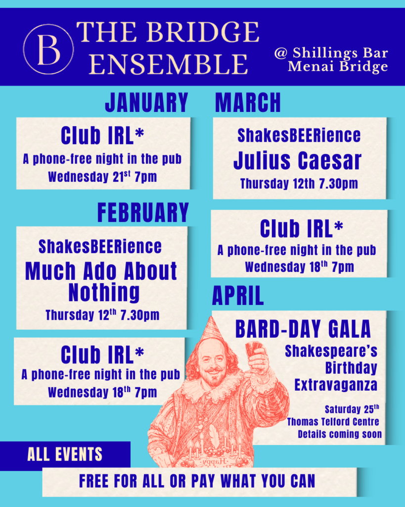 Whether ‘quick raising’ a show in a couple of days, doing Shakespeare readings in the pub, providing workshops, or staging full productions, we are committed to making theatre accessible, inclusive, and community based.